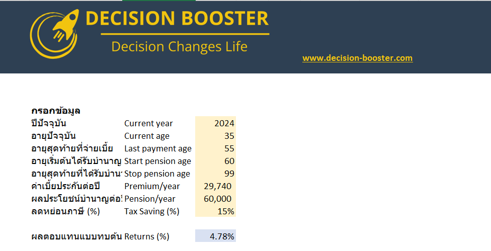 วิธีใช้ Excel Template สำหรับหาผลตอบแทนของประกันบำนาญ