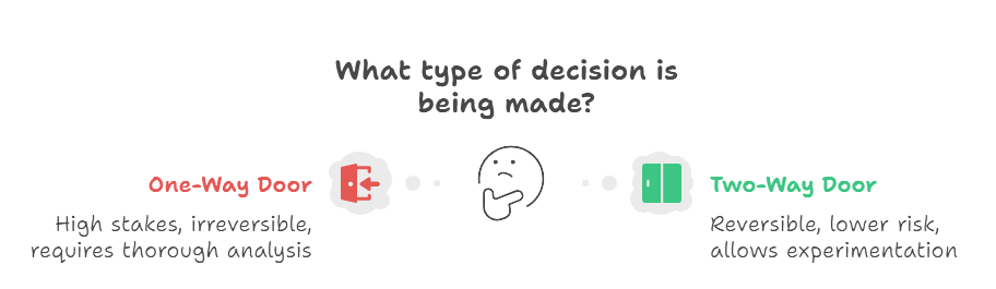 ✅ ประเมินว่าการตัดสินใจนั้นเป็น one-way door หรือ two-way door